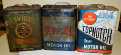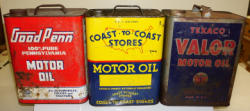 Oil cans are all cardboard, metal coffee can and metal Oilzum can, most oil cans are full and have wear, sells 8x the money