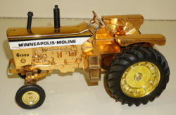 beautiful and rare gold tractor! Comes with a letter from the family that originally received this toy; it was awarded to WL Pringle, Director of Marketing at MM when the G-1000 was introduced; letter is from his son; overall condition is clean and nice with some age spots and patina, but not bad at all; believe only 4 or 5 were ever produced as awards by MM