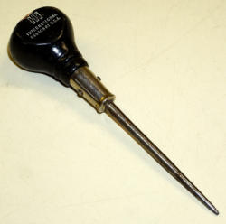 7.5" long, label is a little worn from use, wood handle, another rare little tool