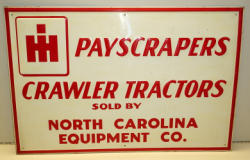 10"x48"x1" thick, pressed board, has fairly heavy wear and some paint flaking, but a piece we have never seen; was told it probably came off the Industrial/Construction dealers tool set! Not the best of condition, but a pretty rare IH sign