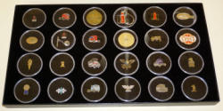 looks to be a complete set from the first year to current, all clean and nice, comes with the original pouches and boxes too, all mounted to a metal display tree, sells as a set for one money