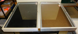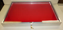 each 22"x34" about 3" deep, clean and nice lockable cases, great for displaying your collection or for dealers for shows; no shipping, 2x the money