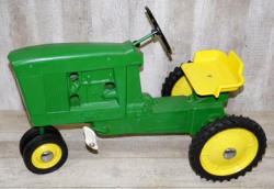 Model # and nameplate are cast into the hood, missing the steering wheel, 3pt is a little bent and has pretty heavy wear; regardless, a rare & hard to find JD model