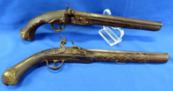 reproductions; no makers marks anywhere; both nearly identical; 18" long; one works alittle bit; sell for one money; no FFL transfer needed; wall hangers