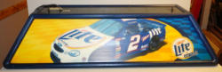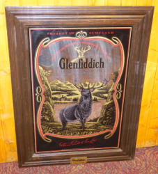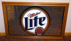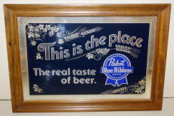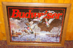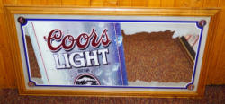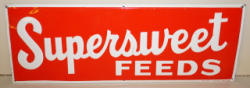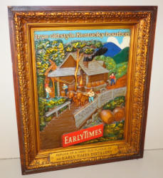 48"x48", wood back and frame, lots of small BB size chips and dings, but overall has a great patina look to the sign, early piece