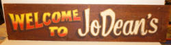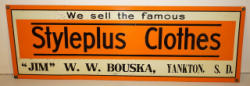 100" long, 27" tall, painted on a full dimension 1" thick plant, original frame is rotting off, has some paint flaking, but not bad for a 125+ year old sign; this came out of the Alcester Museum auction many years ago