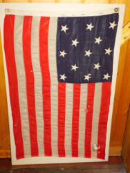 29"x48", not a 200-year old flag, but made for the US Centennial, so definitely has some age, but not an original 13-colonies flag, mounted to a board to display
