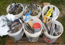 rollers, clips, taping knives, lite-forms, framing nails; all to go
