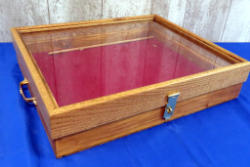 glass face, has protective wood cover to protect face, padded bottom; 19"x16"x4"