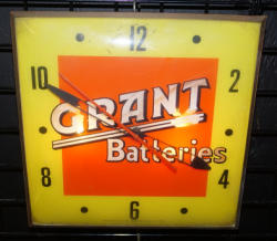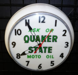 12"x24", plastic face, lights up, has some scuffs from the hands and general wear, light damage to a corner