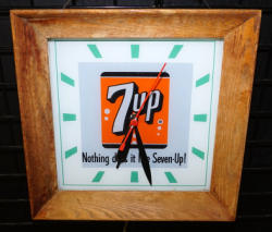 15"x15", runs, masonite clock, non-lighted, hands are a little bent up, but rest of the clock looks good