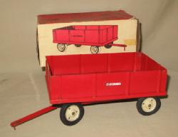 Toy is very nice, 97% or better. Box is square, but has a large tear on one side and some general wear, hard to find the all rubber wheeled wagon