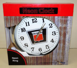 18" across, double ring of neon, brand new, chrome plastic body, very bright, looks good