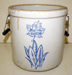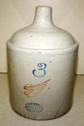 17" tall, lid has some large chips, base is nice and good dark blue lettering; never seen this piece that I can remember
