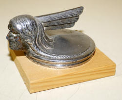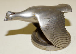 4" long, tip of one of the wings is broken off, wood base is not attached