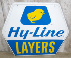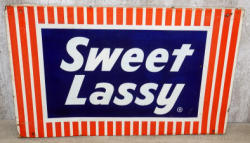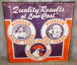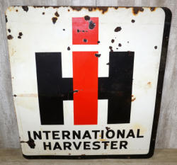 48"x53", some large chips and rust stains, a little bend, good patina sign, rates 7 condition