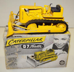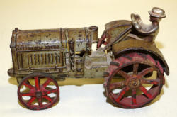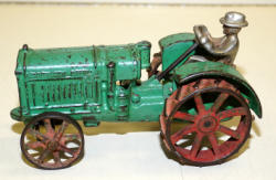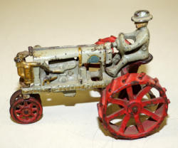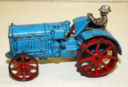 4" long tractor, near mint toy; box has the top main flap torn off the rest of the box, but it's there, neat graphics, box rates 6.5 condition
