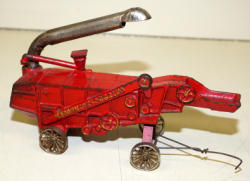 Super clean, near mint original threshing machine; Box is the corrugated cardboard version with the stamp on the end; box has some large tears in the sides, missing one inside flap; not the best box, but very a rare box in any condition