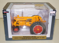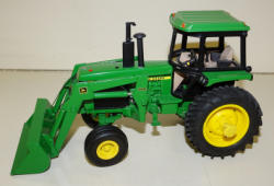 Ertl tractor that has been customized with rock box, 3pt, quick hitch, lights & more; 3pt was not painted, still steel color, and has mounts for front fenders, but they are not there, a little TLC and you'll have a nice piece