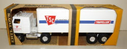 over 4' long when hitched, built from a Buddy L cab, Trailer is mostly scratch built from steel, a little crude, but it's big and & unique!