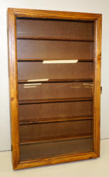 26"x16"x3" deep, good condition, no shipping; has grooves in the shelves, would be great for matchbooks or coasters