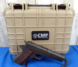 has a Colt frame and Remington Slide; nice condition; has CMP COA; two magazines; CMP heavy duty hard case w/paperwork; 5" barrel; wood checkered grips; SN#2332521