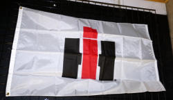 main banner is 90"x33" plus pennants on each end, never sued, some wear from storage, but overall is bright and A-1 condition, nice piece