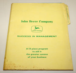 originally had 12 pamphlets, but only 9 are left; all in a 4-leg folder, from a JD Dealer training program, overall pretty clean & nice, unique