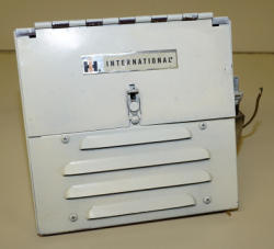 Idealine brand, near mint with original box, a little smaller than a Zippo; believe the empty slots held replacement flints originally and are not included