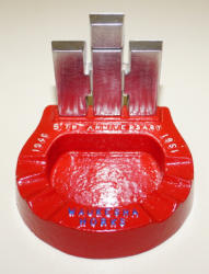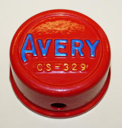 Cast iron base, emblem is tin, nicely repainted, 5.5" across, heavy