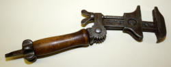 about 13.5" tall, wood handle, screwdriver end, good lettering, has been cleaned, unique tool