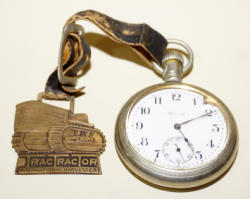 can't read the name on the face of the watch, has a small chip in the porcelain; Fob is an original with a lot of wear, sells as a package for one money