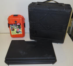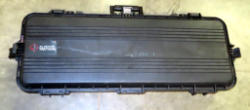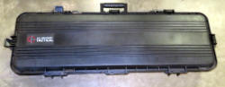 there's no name or brand, looks like one of the heavy Pelican cases; 19"x24"x10"; padded inside