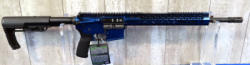 looks mint & unfired; original hang tag; beautiful metallic blue finish; 16.5" BBL w/flash hider & 1/7 twist; one magazine; factory soft case; extendable stock; made in USA; SN#SX009118; AR-Terms