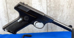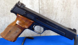 PJE; 5.5" BBL; wood checkered wrap-around target grips; adjustable rear sight; one magazine; used and has a couple minor scratches on the bluing; made in USA; SN#A486749