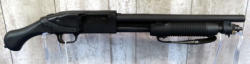 nice; 23" BBL; pump action is alittle tight, needs some lube; wood has light use marks; spot of bluing missing off top of barrel; made in USA; SN#236670