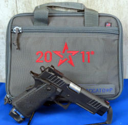 4.5" Stainless barrel; hy-vis front sight; plastic frame; 3-magazines; factory zippered case; marked 2011 on left side of slide; made in USA; SN#TX15589