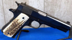 5" stainless barrel; stag grip; rear night sights; marked "United States Property"; one magazine; nice heavy 1911; made in USA; SN#2381557