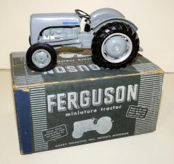 1/12th scale, 1950's plastic toy, near mint original, minor wear to the 3pt drawbar, box is nice and complete, has the box liner, maybe a little faded from age, overall rates 8.5 condition