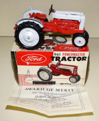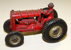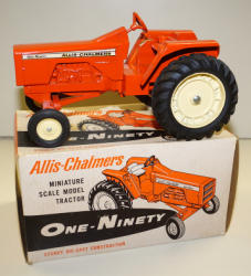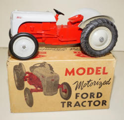 Mint toy, solid rubber wheels, cast-in round seat & 3pt version; nice original box, some light discoloration, overall rates 8.5 condition