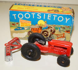 1/12th scale, 1950's plastic toy, has 3pt hitch, no drawbar, has some hairline cracks in the rear wheels
