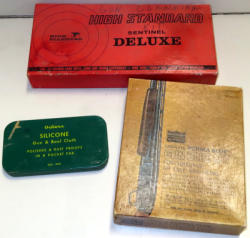 Gun Blue Kit still sealed, brand new; High Standard box has some cleaning supplies; Outers Silicone cloth is new and in the tin; sell for one money