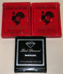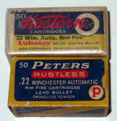 older box has quite a bit of wear and tears to the corners; both full; 50 rounds; sell for one money