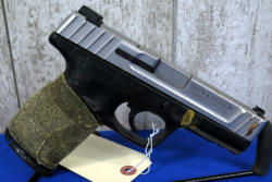 4" stainless Barrel; stainless slide w/composite frame; one magazine; has some rusting; needs a cleaning; tape around the handle; night sights; USA; SN#FBJ0704