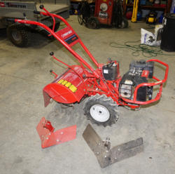 runs good, Briggs & Stratton 8hp engine, Electric Start, includes 2 plows and had new tiller tines a few seasons ago, big & heavy duty tiller.
