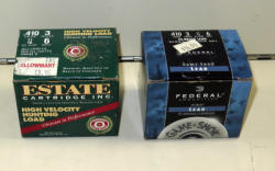 all boxes have some minor wear and missing a couple flaps; 2 boxes look full w/correct ammo, one .410 box only has about 10-rounds of mixed shells; sell for one money
