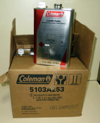 full case of six 1-gallon Coleman cans & one Crown can; NO SHIPPING, LOCAL PICKUP ONLY