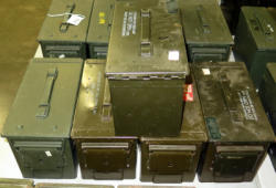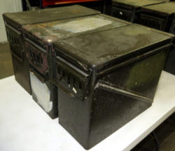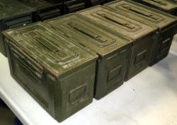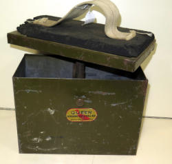 very hard to find; only 2nd one we've ever sold; pad on top has some wear, cloth handle; minor paint loss and wear; size of a normal ammo can