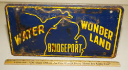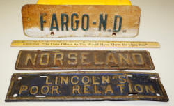 5"x14", embossed letters, has some wear, early piece
