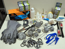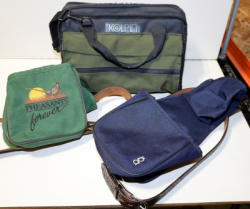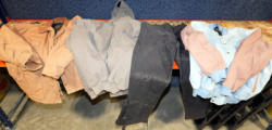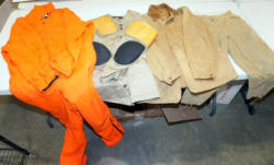 includes a pair of J.C. Higgins hunting pants; orange overalls are size XL; rest look like about size large; all used w/some minor wear; sell for one money